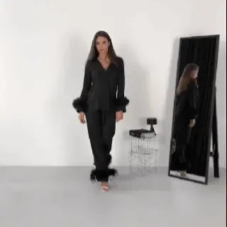 Con hermosos detalles de plumas de avestruz. Perfecto para fiesta nupcial o para cualquier mujer que disfrute de la ropa de dormir elegante, cómoda y divertida.