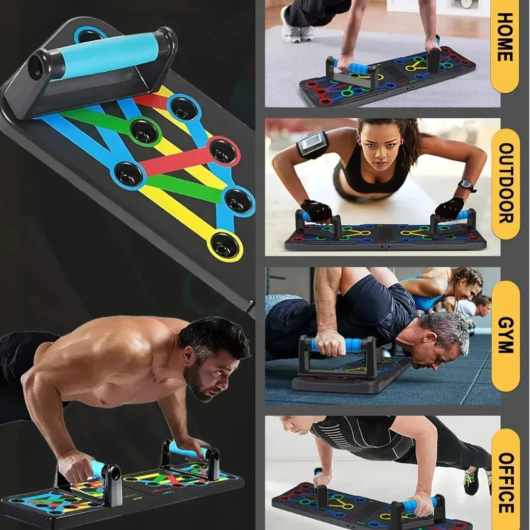 - Tabla de push‑ups en ABS, plegable 180°, especial para trabajar el tren superior.